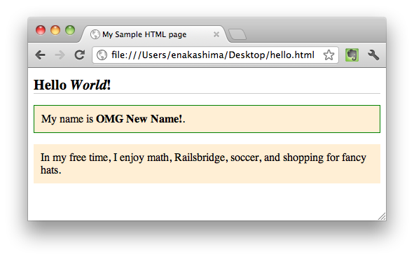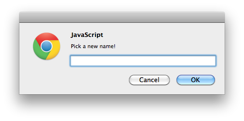 a variable called 'myNewName' and sets it equal to a value. The browser window